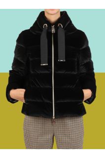 Its cosy design is finished with a large grosgrain drawstring decorating the collar and a two-way zip to adjust the fit.